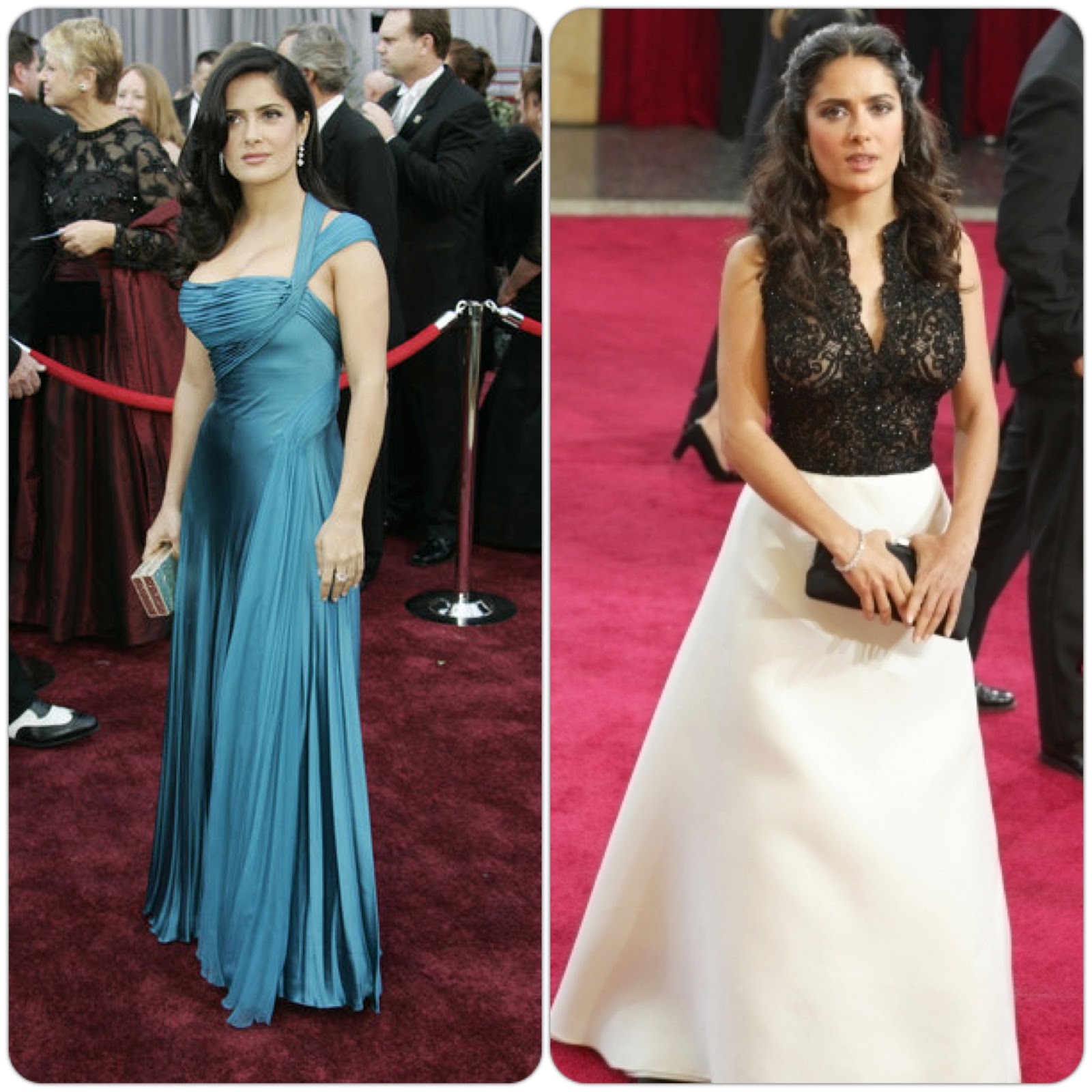 2. The number two position on my list has to go to the most successful Latina actress to cross the border into the American zeitgeist, the flawless Salma Hayek. I was incredibly fortunate to have met Ms. Hayek once and let me tell you…she is just as beautiful, graceful, sweet and kind as she seems on screen. I was stuck between these two dresses for a while before finally deciding to post them both. Why not? It’s my blog and I’ll PicFrame if I wan to!