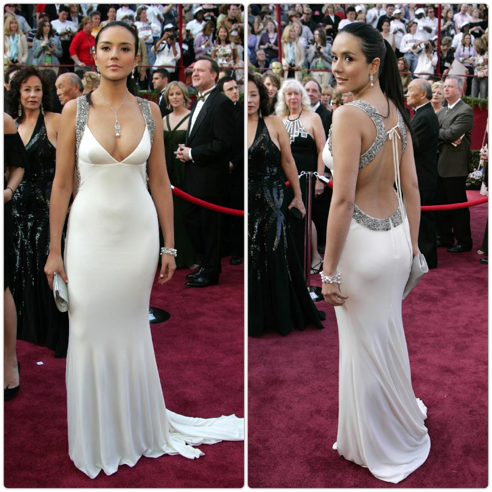 1. My number one pick is Catalina Saldino Moreno in Dior. I decided I would get married in this dress exact dress the moment I saw it in 2005. This of course was years before I met my husband and before I realized how completely unforgiving that kind of material can be to a new mom. Clearly these were not issues for Catalina who looks absolutely stunning in this white crystal embellished gown. This dress exquisetly displays that famously curvy Colombian figure, showing off every asset this young and talented actress has.