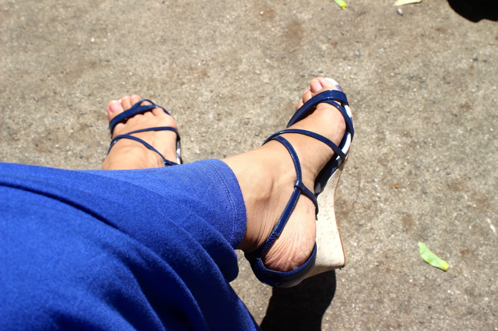 Although the strong heat wave broke in New York City, it’s still pretty warm out. One of my favorite things to wear on hot summer days are maxi dresses. Not only are they simple but they help keep you cool (as long as they’re made from breathable fabrics). Here I’m wearing a blue Forever 21 dress that I purchased from Poshmark for just $8! I’ve paired it with some blue patent leather Burberry wedges and the latest addition to my Louis Vuitton collection – the Ikat Neverfull in Grand Bleu (watch my review of this bag here).