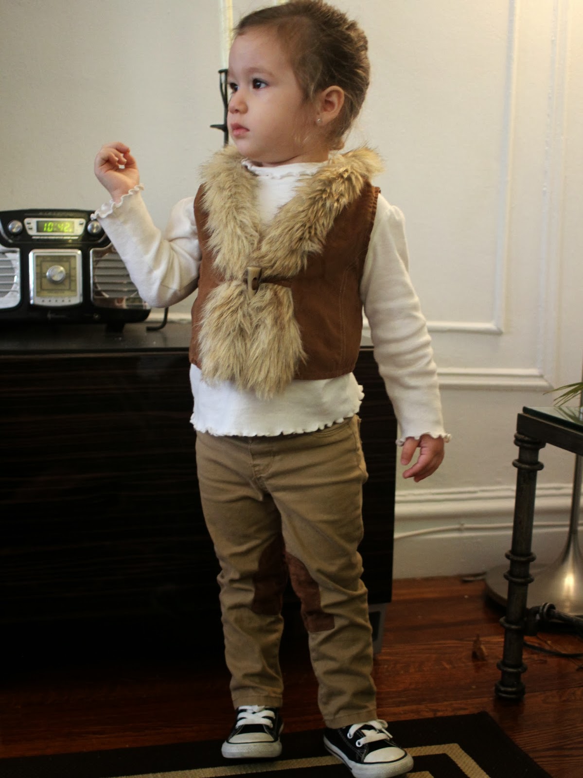 My favorite piece from of this look is the faux suede vest with faux fur collar. I love when children’s clothing brands make pieces that you can find in any woman or man’s closet but miniature sized for kids. This vest even has a toggle that you could find on adult outerwear.
