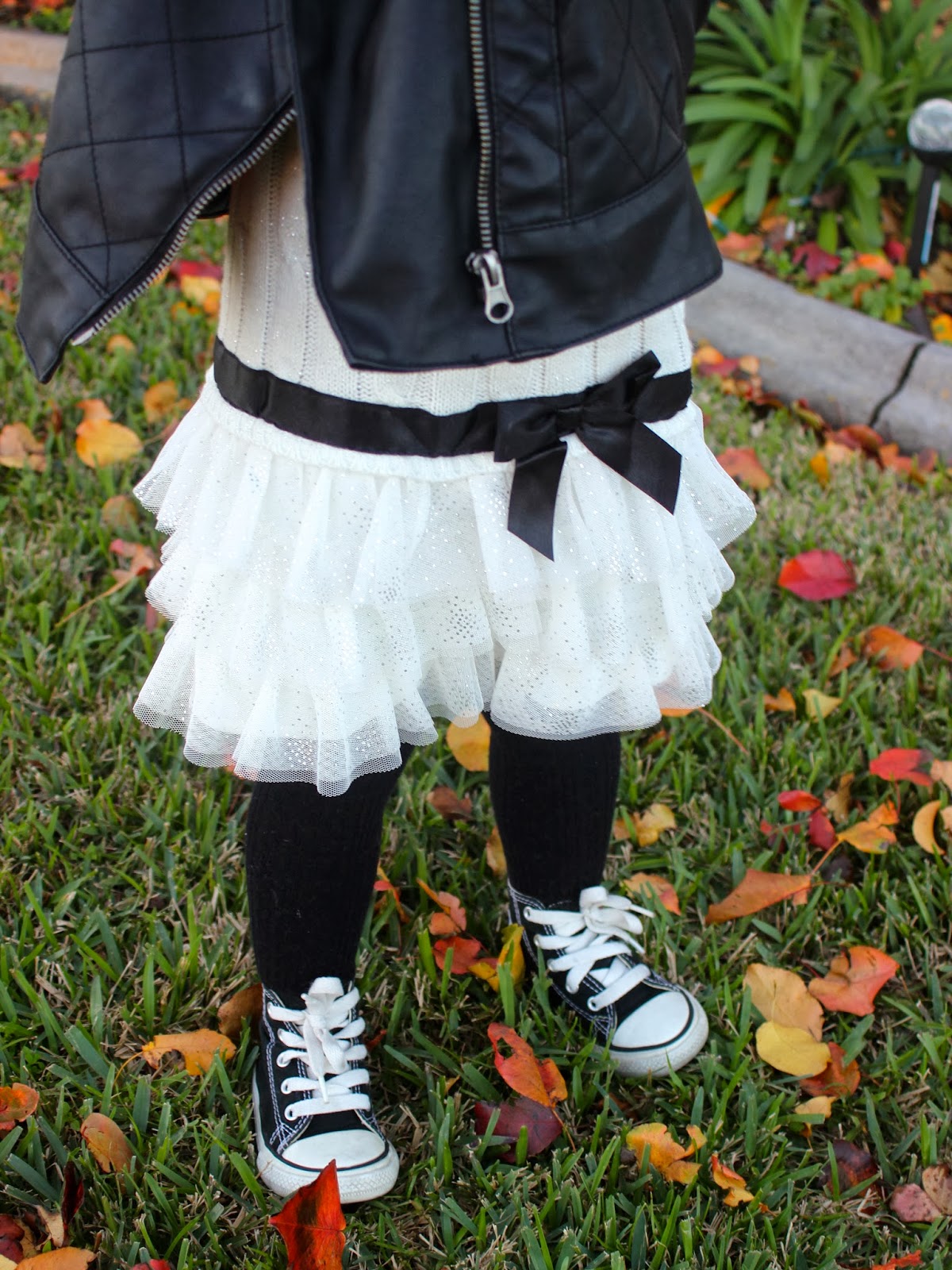 The bottom of the dress has an adorable mesh skirt with metallic dots throughout the fabric. A black ribbon beautifully separates the cable-knit top from the mesh skirt. It also features an adorable bow on the left hip. As I mentioned in a previous Baby Chic post, I love pairing casual and formal dresses with converse. And this outfit is no exemption.