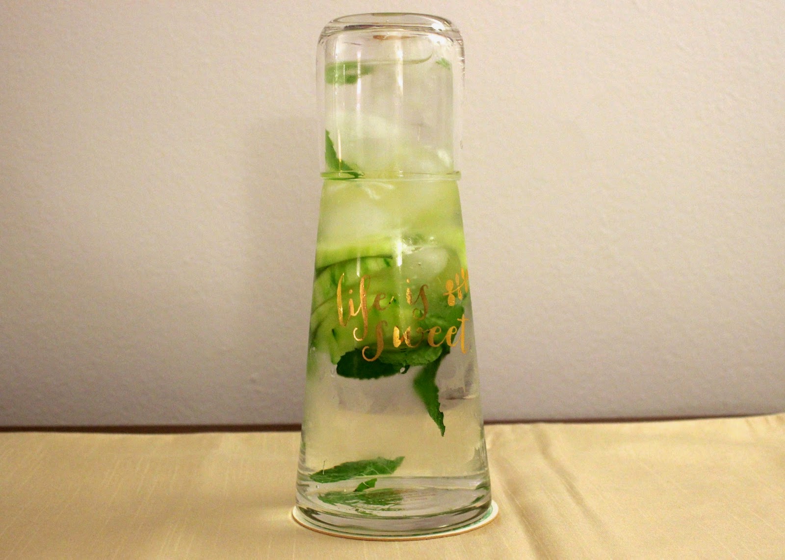 This water includes slices of cucumber and mint leaves. This is a spa-favorite. It’s light and the mint leaves a wonderful crisp taste in your mouth.
