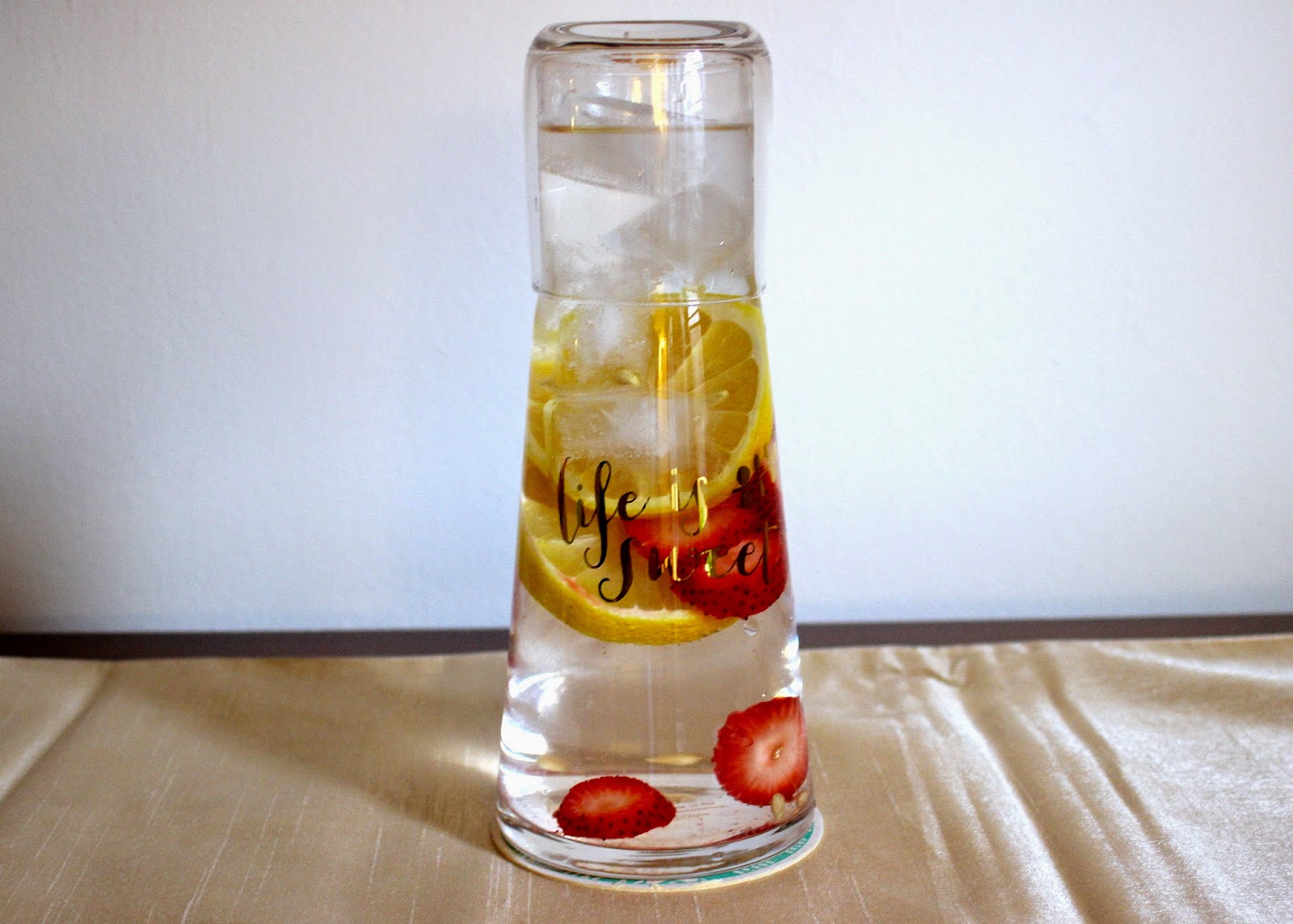 My favorite ingredients to infuse my water with are lemon and strawberry slices. It adds a lovely tart and sweet flavor to the water. It’s delicious.