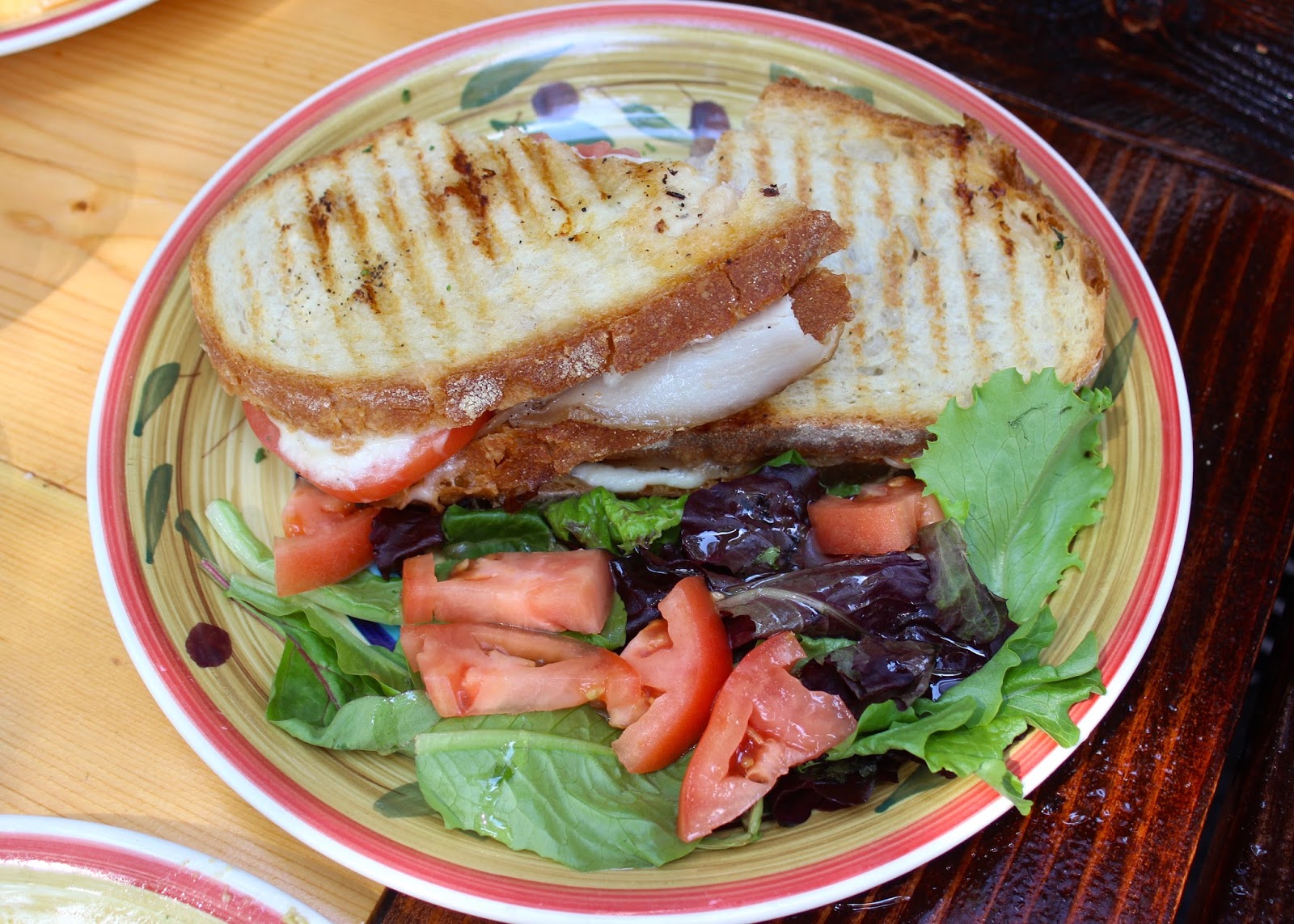 The brunch menu also includes a Panini di Porchetta, which is a thinly sliced roasted pork pressed sandwich.