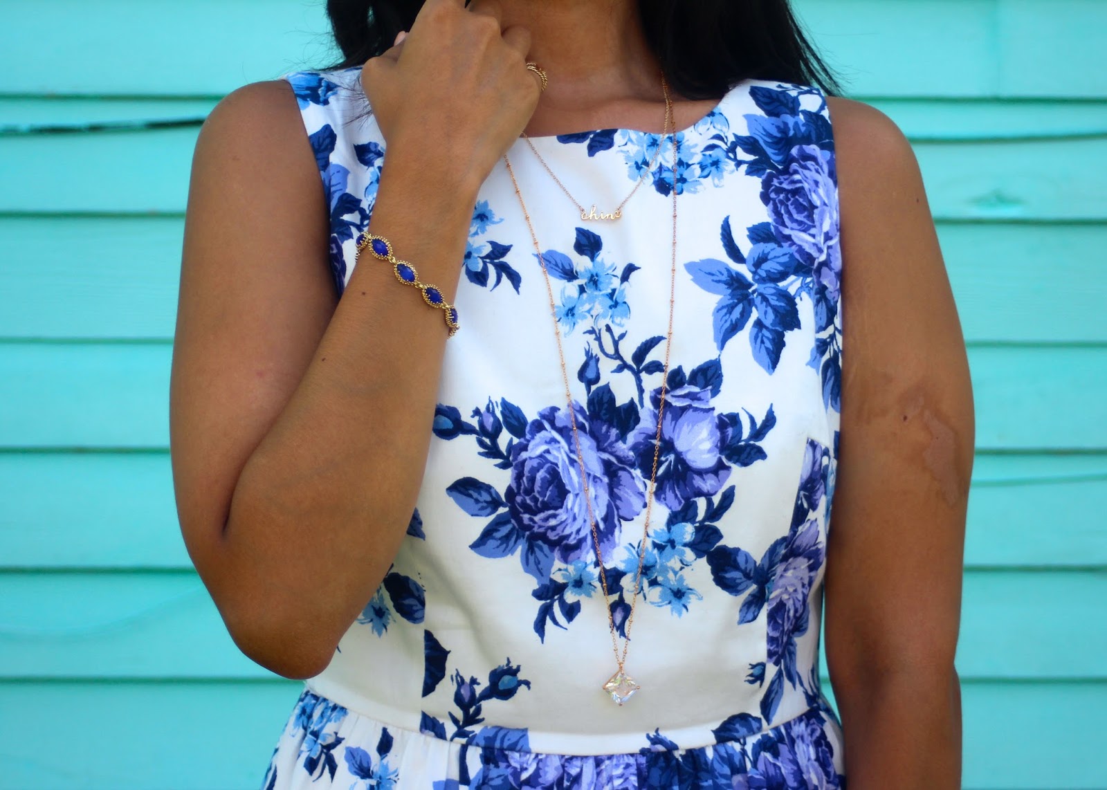 I love how this dress has gradient shades of blue in the flowers featured on this dress.