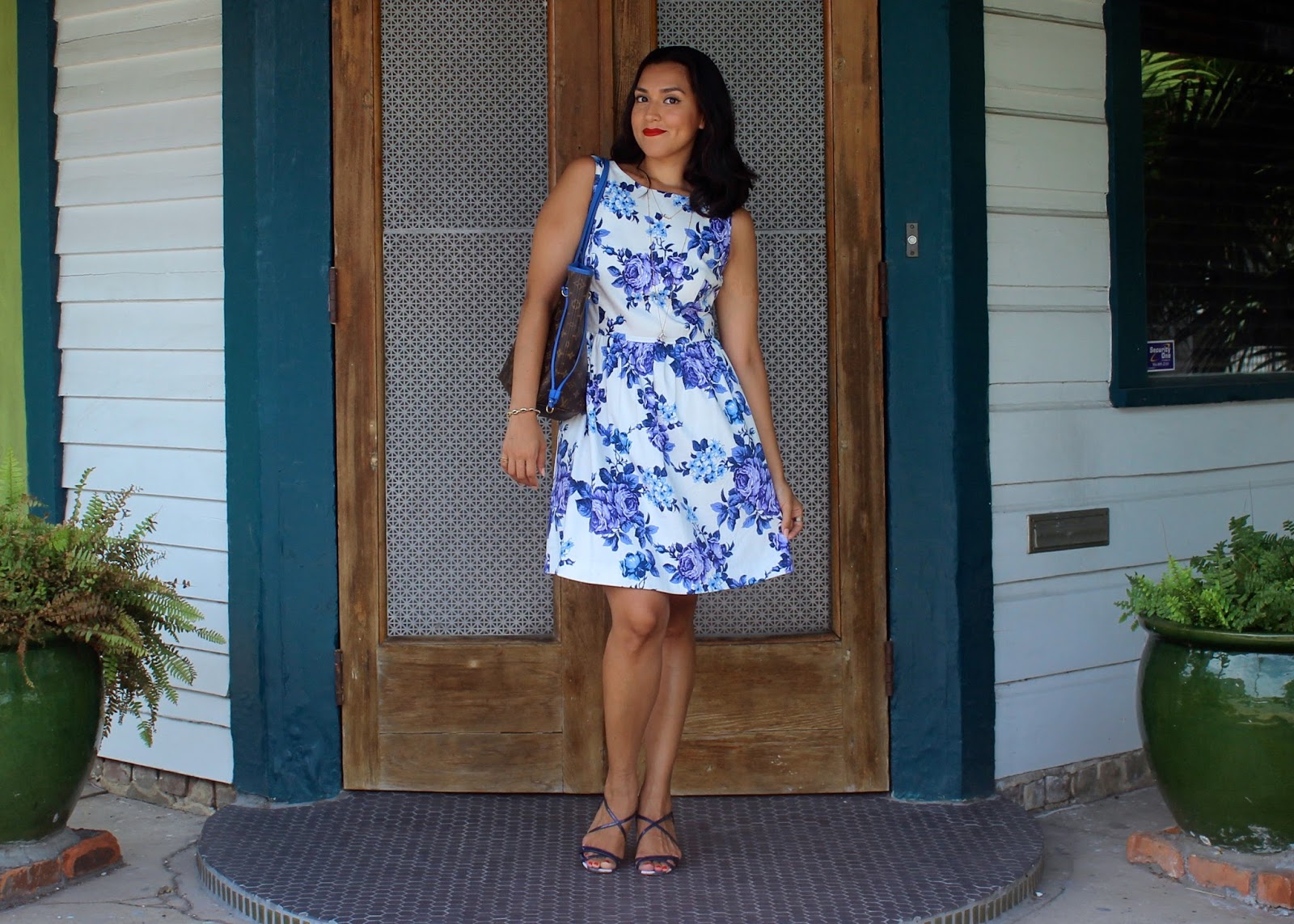 This white and blue floral dress is by Cremieux. It’s a lovely brand sold at Dillards. I love their French preppy style and own several dresses from them.