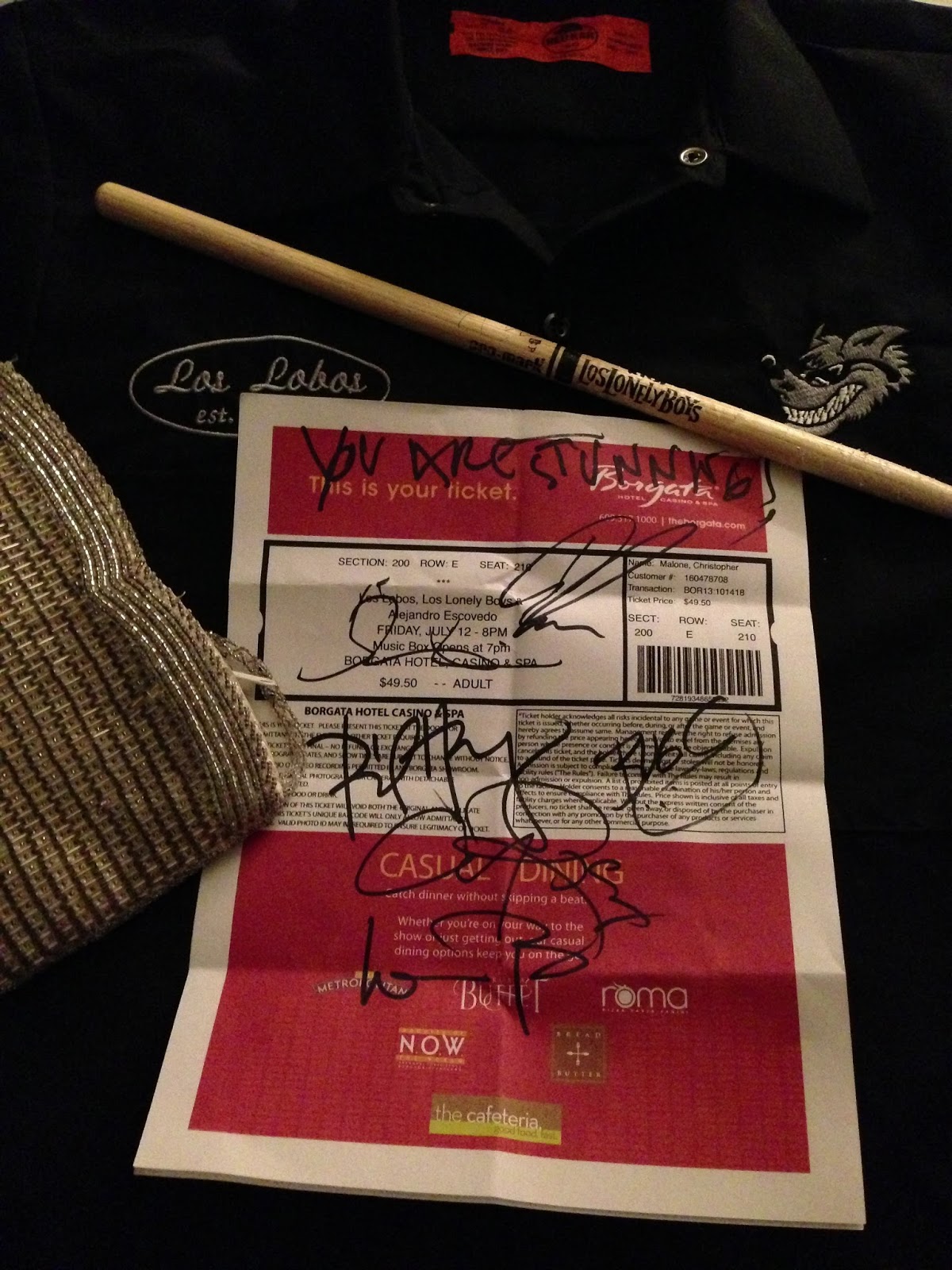 At the end of the night, I wound up with Ringo’s drumstick (drummer for Los Lonely Boys), a signed Los Lobos shirt for my husband and my ticket signed by all the members of Los Lobos with a message that read “YOU ARE STUNNING”. It was one of the best night’s of my life.
