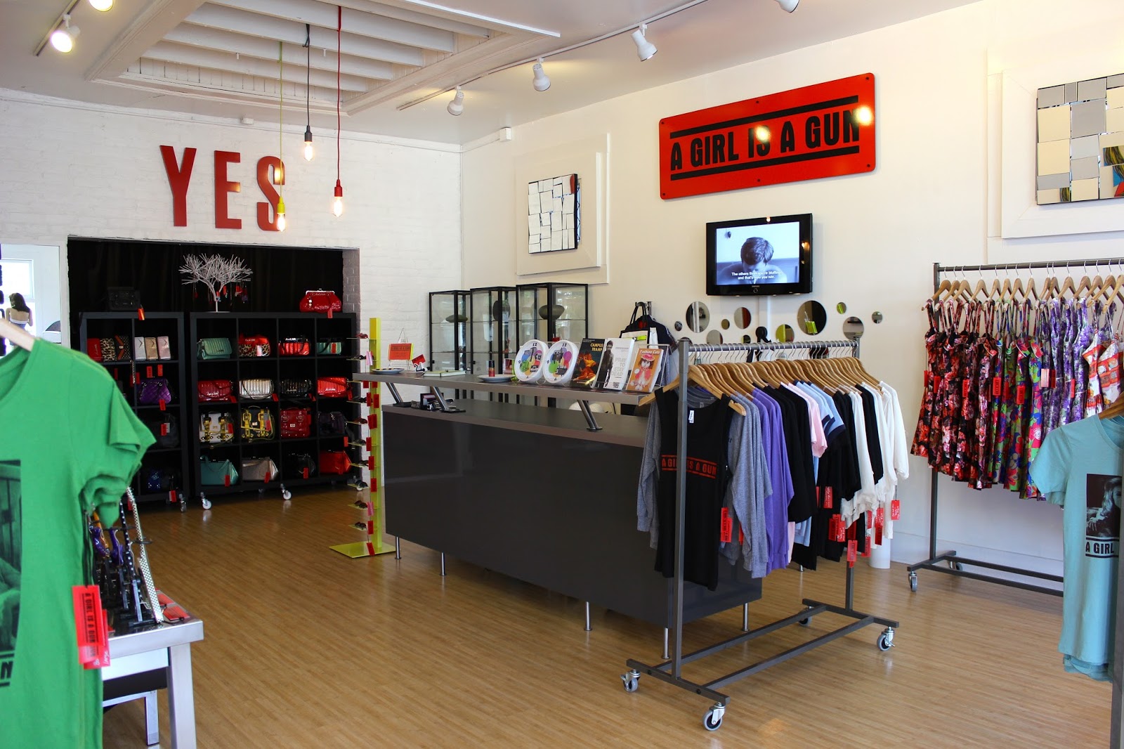Una característica única de A Girl Is A Gun es que impriman sus propias camisetas para adultos y niños. Arriba está un ejemplo de sus camisetas. Otra cosa que es muy interesante es que la tienda es vegana. Ellos no venden ninguna cosa que está hecha de animales.