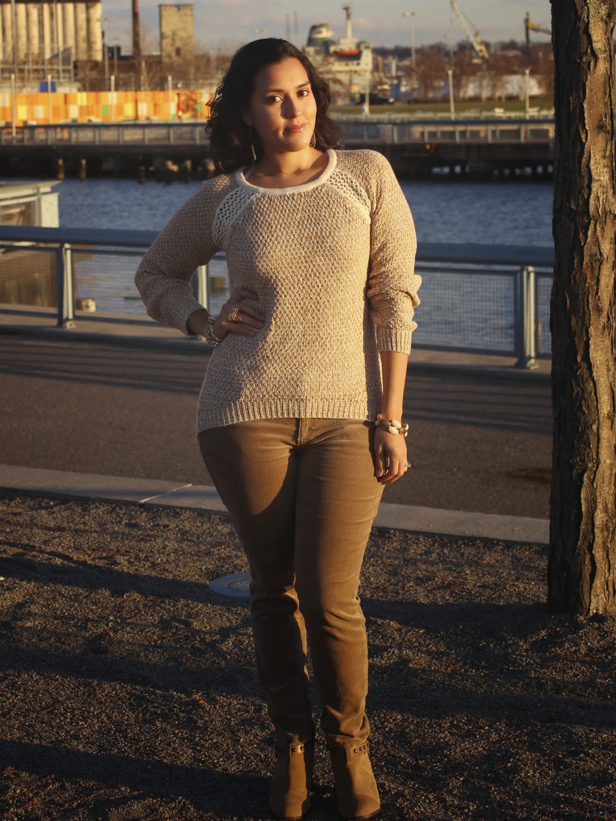 I paired this sweater with tan corduroy pants by 7 For All Mankind. One of my favorite things to do when dressing up in the fall is mixing textures. Fall is the perfect season for doing this because we’re already dressing in layers for the cooler weather. Here I’m mixing corduroy, knit, crochet and some faux suede.