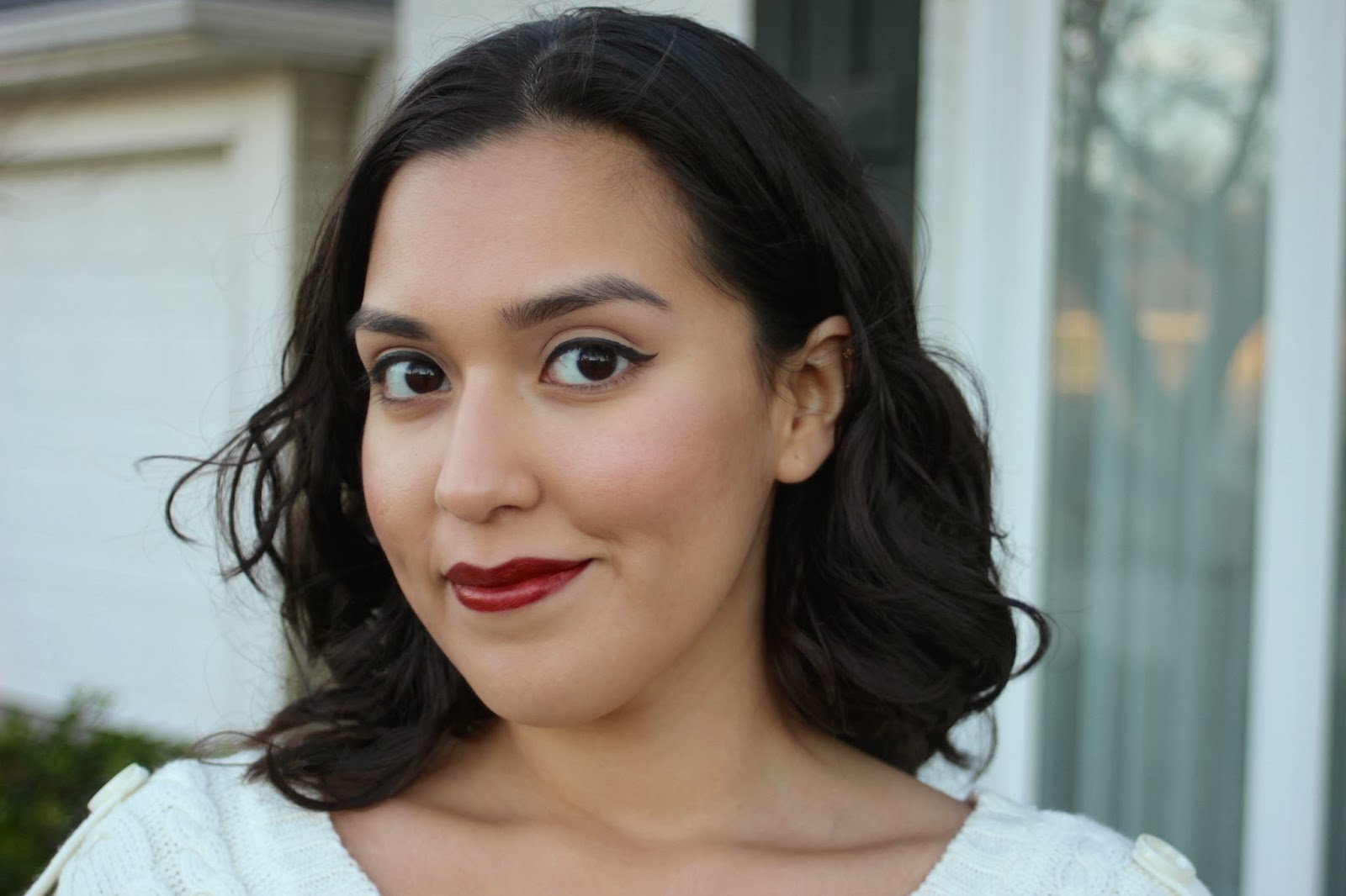I kept my makeup light and simple. I’ve applied my bareMinerals foundation with a bit of a tart blush on my cheeks. I finished the look with my Mary Kay liquid liner in a demure wing shape and MAC’s Show-All lipstick.