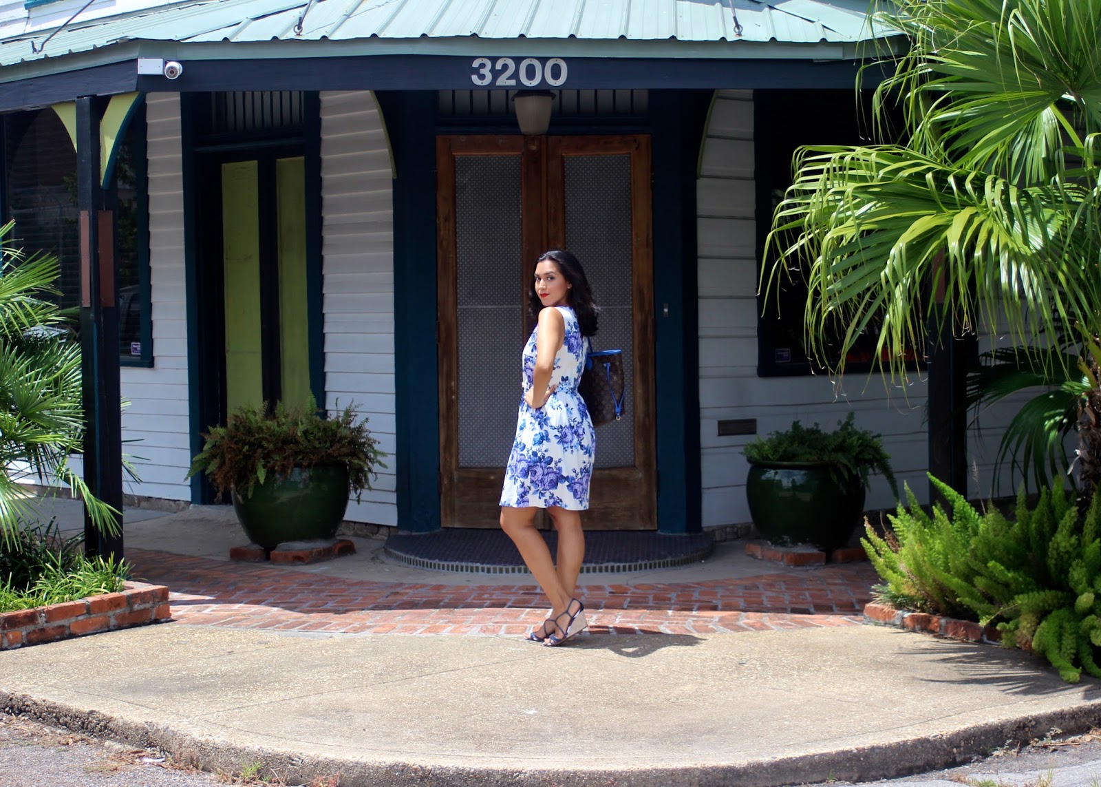 This white and blue floral dress is by Cremieux. It’s a lovely brand sold at Dillards. I love their French preppy style and own several dresses from them.